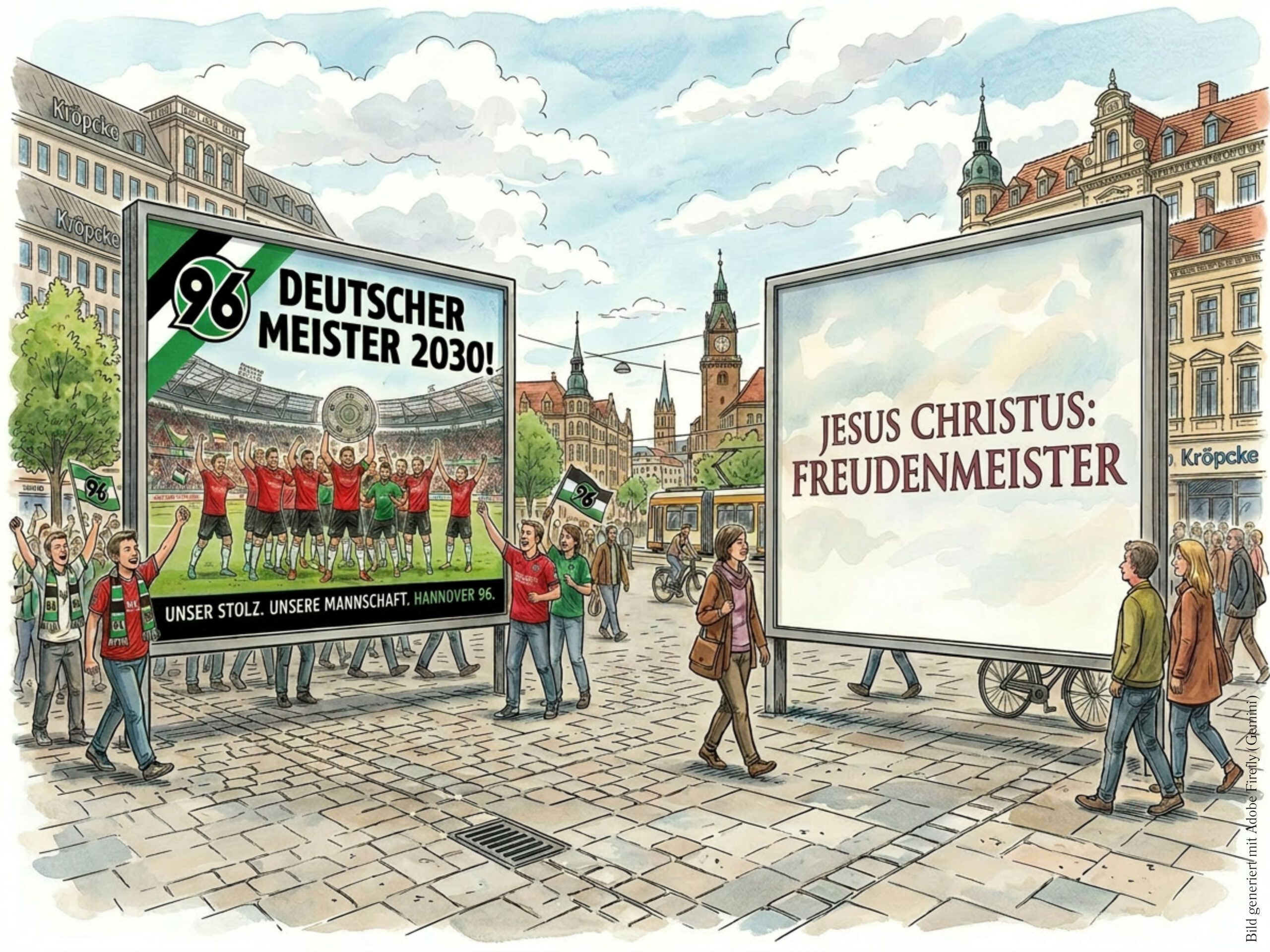 Und dann kann ich als Sportfan ja auch nicht umhin, beim Stichwort »Meister« an die Meisterschaften im Sport zu denken. Da kann es im Normalfall nur einen geben. Und während der eine gewinnt, muss der andere geschlagen das Feld räumen. Im Lied ist durchaus Vergleichbares gemeint, wenn die »Trauergeister« aufgefordert werden zu weichen. Trauer und Schmerz haben ihren Platz in unserem Leben, haben das »Spiel des Lebens« aber nicht gewonnen. »Meister« ist Jesus Christus geworden, »Freudenmeister«. Und mit ihm dürfen wir die »Freudenmeisterschaft« feiern und damit die »Trauergeister« ruhig auch immer mal wieder in die Kabine schicken.