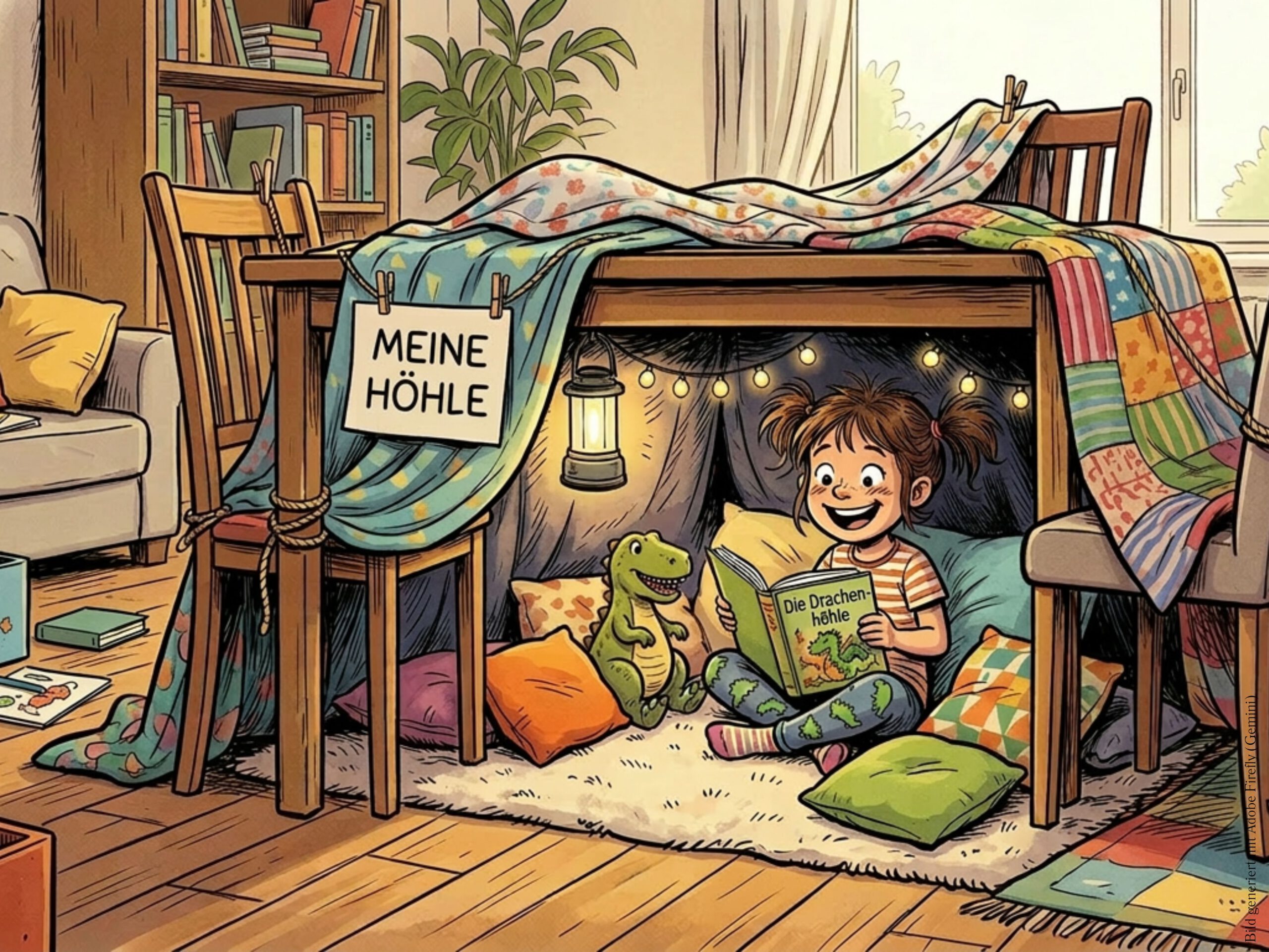 Als Kind habe ich es geliebt, sogenannte »Höhlen« zu bauen, also mir aus Möbeln und Decken einen Ort für mich zu schaffen, in den ich verschwinden, in dem ich es mir gemütlich machen konnte und aus dem ich dann auch wieder nach einiger Zeit auftauchen konnte. Im Rückblick sind diese »Höhlen«, die ich mir damals gebaut habe, Inbegriff von Geborgenheit und Schutz gewesen.